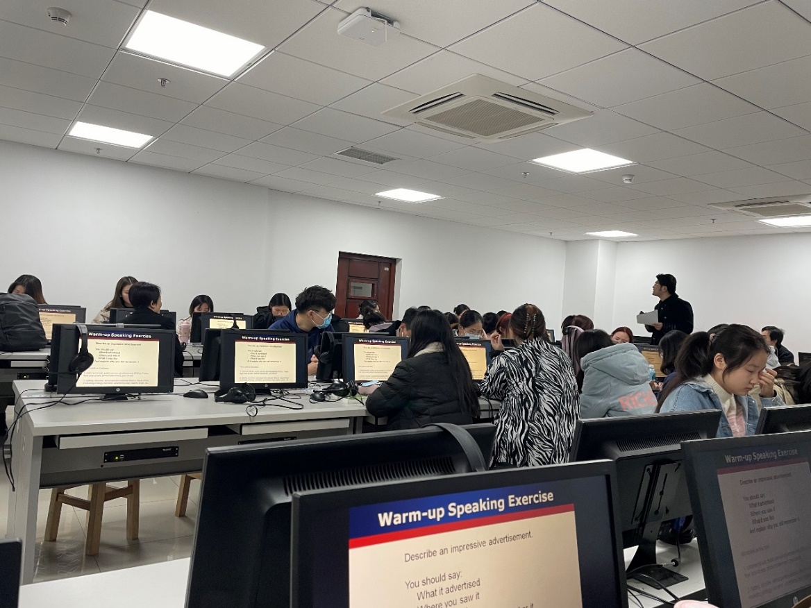 为积极响应学校首届教学观摩月活动,发挥示范课程的引领作用,12月6日下午,在开云kaiyun官网教学副院长杨红燕的组织下,英语系13位教师在东区教学综合楼A0603教室集体观摩了冯迪老师的“基础英语视听说3”课程。该课程同时还吸引了其他专业的2位老师前来观摩。
