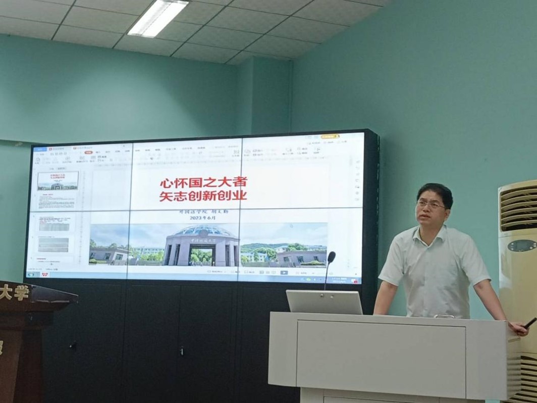 最后,开云kaiyun官网党委副书记胡文勤总结讲话。他首先对各位嘉宾的分享做出了精彩的点评,然后从政策保障与制度安排、实践探索与逆势突围、立足学院与选题参考三个方面,重点介绍了学校和学院鼓励同学们创新创业的奖励资助政策、目前大学生创新创业中容易遇到的主要问题和解决方案以及可供外语专业学生参考的创新创业选题。胡文勤老师在讲话中也穿插了他十余年指导学生团队参加创业比赛和实体孵化的许多典型案例,激励大家向创业榜样们学习。