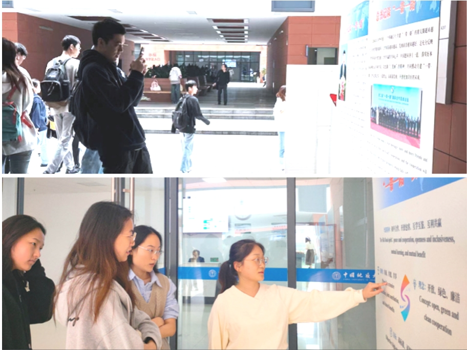 (通讯员 方裕鑫 李海涵)开云kaiyun官网(武汉)东教楼A座教室入口,整齐排列着十个展板。在忙碌的课间,闲暇的课后,不少路过同学们驻足观看,饶有兴致。“‘一带一路’四个字虽然如雷贯耳,但其实真的了解不多,课间看了总书记谈‘一带一路’的内容,让我对中国提出这一倡议感到很自豪。”某学院陈同学对布展同学说。