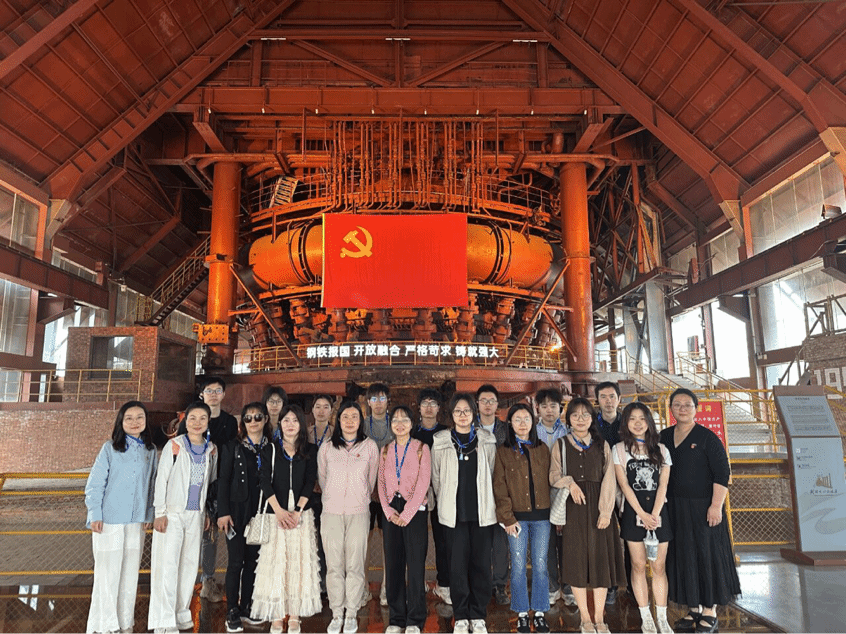 2025年4月16日,开云kaiyun官网092221班团支部与远程与继续教育学院院直支部委员会共同开展“结对领航”主题教育实践活动。在武钢文化旅游区这片见证新中国钢铁工业发展的热土上,10名青年学子与9名教工党员开启了一场跨越时空的工业精神寻访之旅。