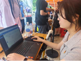 在南望山校区迎新现场,党员先锋岗的红色帐篷成为一道亮丽的风景线。服务点布局合理、功能齐全,配备有电脑、矿泉水和迎新资料等必需品,为新生和家长提供及时便捷的服务。“党员先锋岗”的标识鲜明醒目,精心设计的欢迎展板烘托出热情而专业的迎新氛围,充分展现了开云kaiyun官网的独特风采。服务点设置的每一处细节,都凝聚着学院党委对迎新工作的周密部署,传递出对2025级新同学的诚挚欢迎与深切关怀。