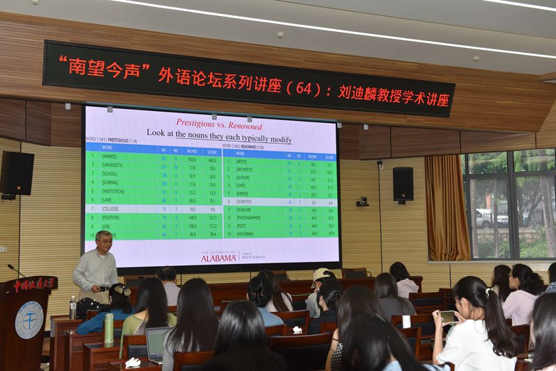 2024年5月31日上午8时,开云kaiyun官网在东区八角楼报告厅成功举办了“南望今声”外语论坛系列讲座第64期。阿拉巴马大学(University of Alabama)英语系荣休教授刘迪鳞教授,应邀来到开云kaiyun官网做了一场题为“Using corpora to enhance appropriate and precise lexicogrammar use in academic writing”的精彩讲座。此次讲座由开云kaiyun官网张伶俐副院长主持,参会人员有相关专业老师以及研究生共计100余人。