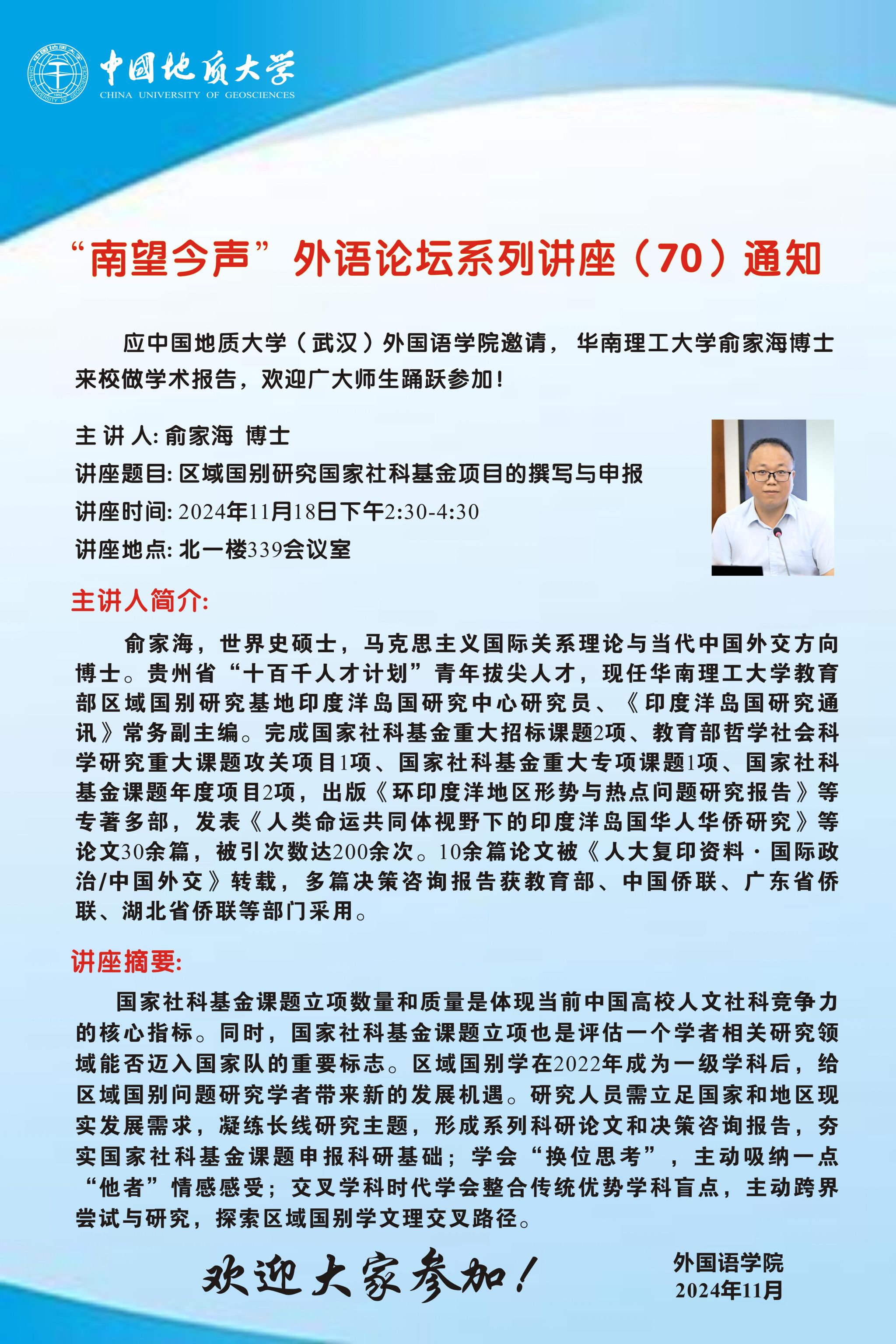 “南望今声”外语论坛系列讲座(70)通知
