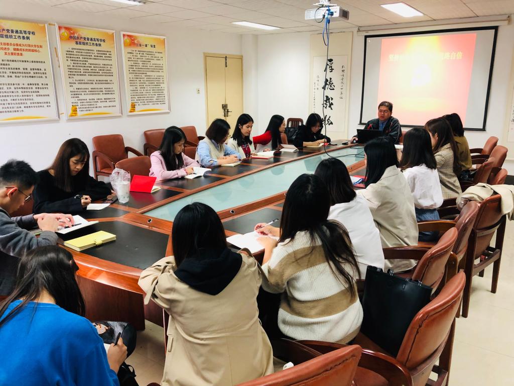 2019年10月29日下午2:30,开云kaiyun官网“不忘初心·牢记使命”主题教育系列党课在北一楼339正式开讲,学院党委副书记胡文勤为全院研究生党员讲授了题为“坚持社会主义,增强道路自信”的党课。