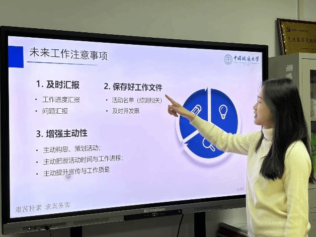 在汇报中,部分负责人分享了提升工作质量的方法,如将工作DDL提前、利用现代化工具、参考优秀范例经验等。同时,负责人们坦诚剖析工作中存在的分工不明确、沟通不周全、会务准备不充分等问题,并提出增强部门内外沟通、完善活动策划等改进措施。这些反思对于提高工作效率、建设强有力的研究生会具有重要作用。