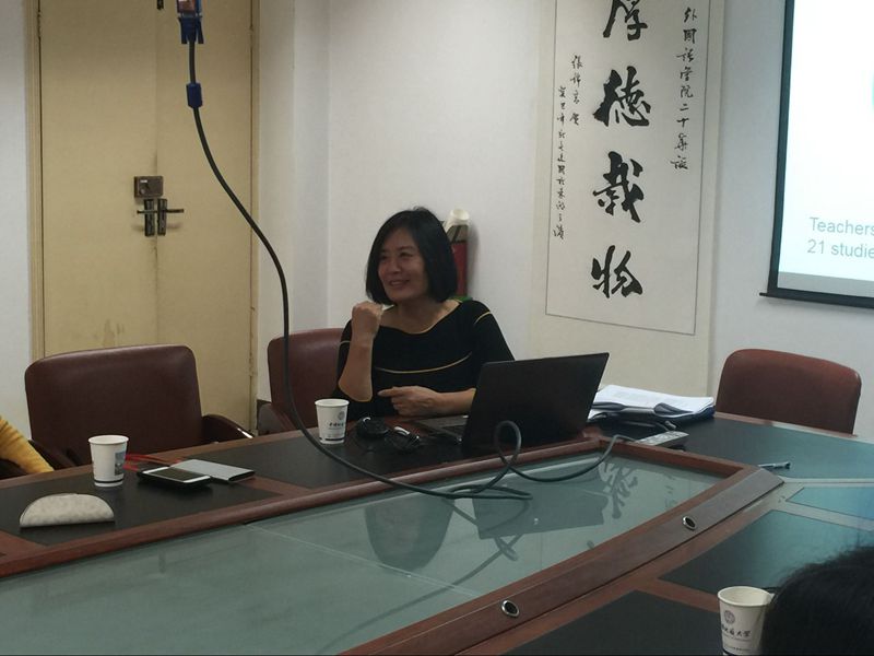 中西语言文化学术论坛系列讲座(九十七):雷丁大学教育学院张晓兰博士主讲 (通讯员胡卉卉)应开云kaiyun官网董元兴院长邀请,雷丁大学教育学院张晓兰博士为我院英语教师们带来了一场题为“纠错性反馈”的精彩讲座。 此次讲座由开云kaiyun官网张伶俐教授主持。此次讲座中,张晓兰博士首先引出了“纠错性反馈”的概念,并结合课堂中的实例,进行了细致的讲解。接着,张晓兰博士询问我院教师们在英语课堂中是否运用到“纠错性反馈”,继而,与教师们就其重要性展开热烈地探讨。