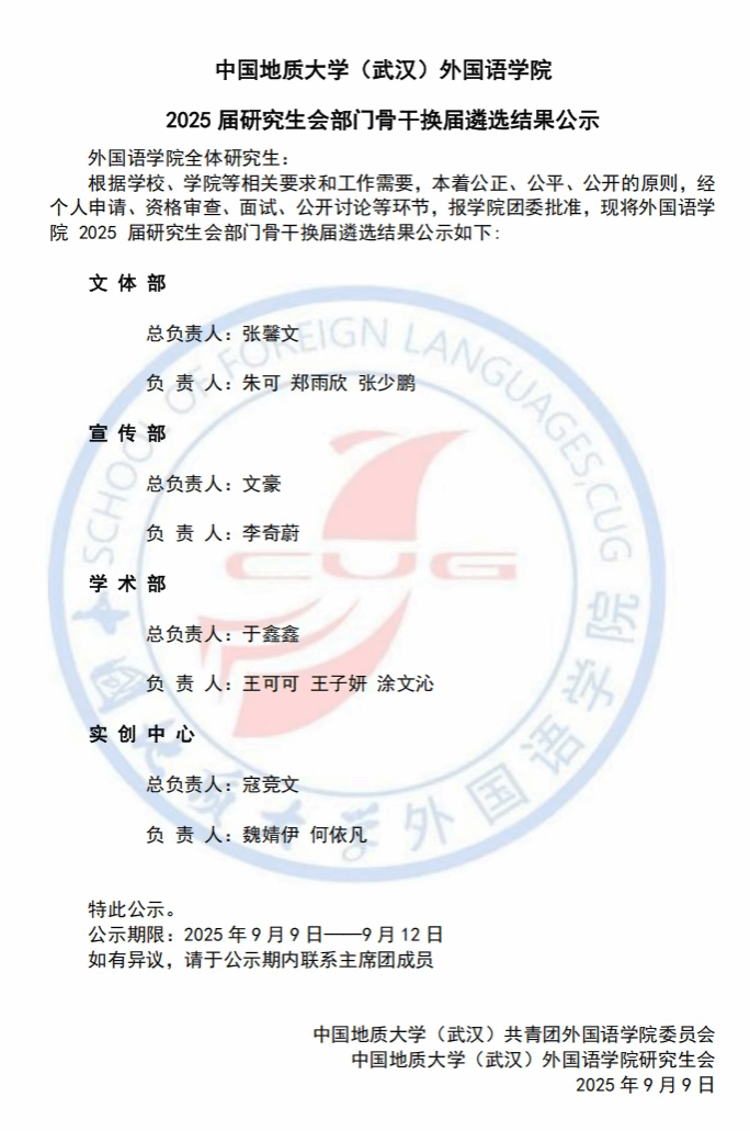 开云kaiyun官网2025届研究生会部门骨干换届遴选结果公示