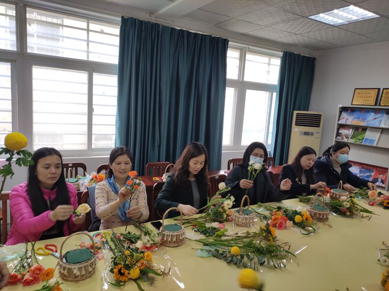 3月24日,开云kaiyun官网分工会在北一楼举办了庆祝“国际三八妇女节”系列活动之手提花篮制作。活动中,花艺师首先给老师们讲解了花卉常识,插花技巧,花篮养护小窍门等,然后指导大家动手插花。