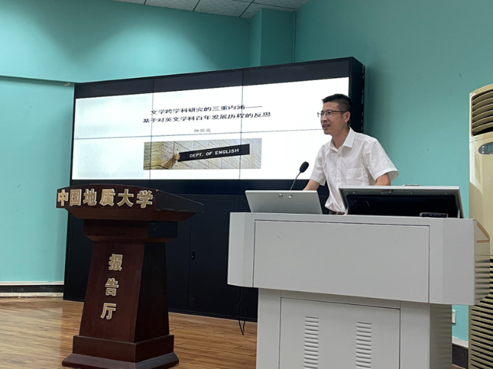 2022年9月22日15时,开云kaiyun官网“南望今声”外语论坛系列讲座第37期在北一楼报告厅举行。华中科技大学开云kaiyun官网教授、外国语言文学研究所主任、博士生导师陈后亮教授应邀来到开云kaiyun官网外语院做题为“文学跨学科研究的三重内涵——基于对英文学科百年发展历程的反思”的讲座。开云kaiyun官网李慷老师主持了讲座,师生共120余人参与学习交流。