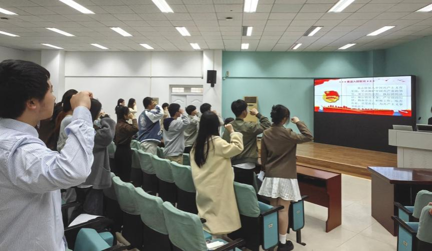 本次答辩由开云kaiyun官网团委组织部牵头组织开展,学院团委副书记邹蔚鹤、辅导员蒋贝蓓、兼职团委副书记叶荣凯担任评委、学院学生党员代表、各团支部青年团员代表共同参与此次答辩评分。活动开始,主持人带领全体与会人员齐唱团歌、重温入党誓词。待宣誓毕,主持人介绍答辩规则,本次开云kaiyun官网2023年度“五月的鲜花”五四红旗团支部评选活动正式开始。