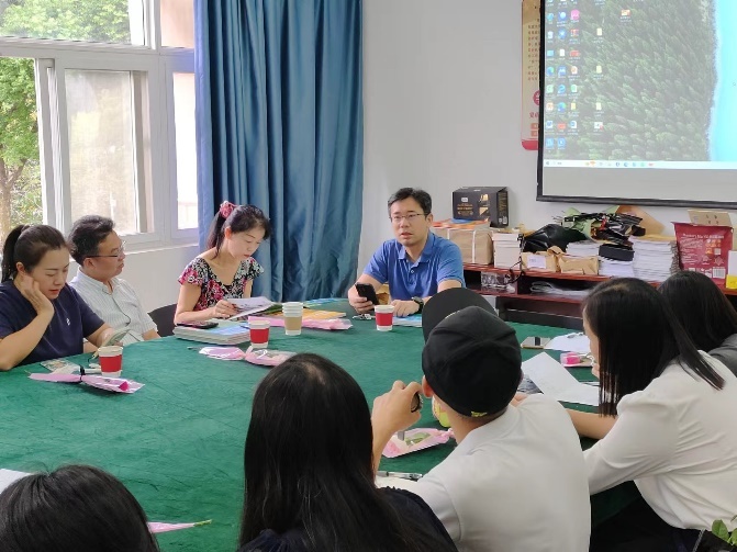 刘世勇聆听教师讨论发言并作指导性点评。他鼓励老师们积极思考思政元素有机融入大学英语教学的途径与方式方法,要求老师们深入学习贯彻习近平总书记在全国教育大会上的重要讲话精神,落实立德树人根本任务,提升课程思政能力,上好开学第一课。