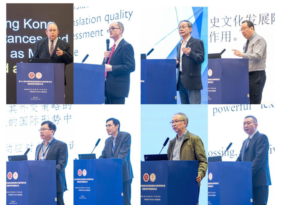 香港城市大学中文、翻译和语言学系系主任 Jonathan Webster教授、香港恒生大学翻译及外语学院院长Mark Shuttleworth教授、香港中文大学(深圳)翻译学朱纯深教授、武汉大学外国语言文学学院刘军平教授、上海外国语大学校长助理胡开宝教授。北京外国语大学高级翻译学院副院长姚斌教授、上海外国语大学高级翻译学院柴明熲教授、开云kaiyun官网院长张峻峰教授等8位专家分别作主旨演讲。主旨发言涵盖了数智时代的翻译技术与实践应用、元宇宙翻译范式与跨文化传播、翻译研究领域的发展变化、现代翻译行业发展、人工智能时代口译教学与研究新趋势、外交话语翻译等多个研究领域,发言高屋建瓴、深入浅出,既有前瞻性、开拓性和学理性,又不乏指导性、实践性和应用性,为中西部地区乃至全国翻译学界和业界的可持续性发展与创新发展提供了多维研究思路。