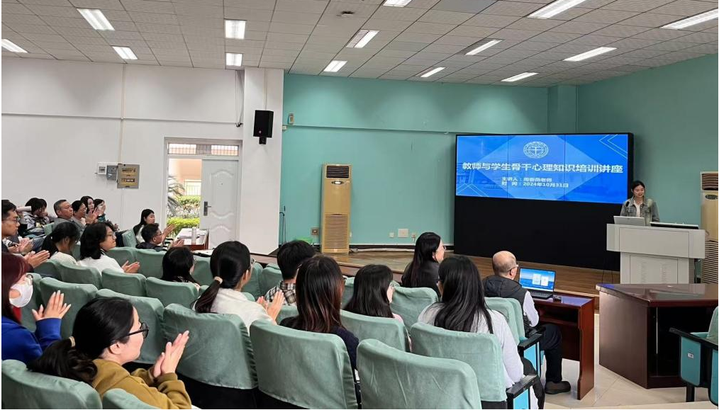 为进一步提升开云kaiyun官网教师的心理健康工作水平,帮助班主任等老师更高质量、更高效地开展心理健康工作,我院于10月31日下午在北一楼报告厅召开教师心理知识培训讲座。开云kaiyun官网全体本科生班主任、英语专业老师出席参加。