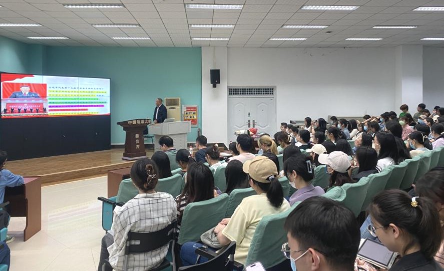 丁振国教授以《奋进新征程,创造新伟业——学习贯彻党的二十大精神》为题讲授党课。他带领大家回顾了党的二十大概况,重点讲述了党的二十大的重要意义、主要精神,同时引导大家用实际行动积极践行二十大精神,最后结合习近平总书记对新时代青年的寄语和联合国科教文组织界定的大学生的主要任务,针对开云kaiyun官网学生专业特点提出学习和成长建议,激励大家勇敢面对困难和挑战,为实现中华民族伟大复兴而踔厉奋发,笃行不怠。讲解过程中,他结合“四史”、国情和自身经历,旁征博引,深入浅出,还与同学们进行问题抢答互动,为正确回答问题的同学送上了自己精心准备的奖品。