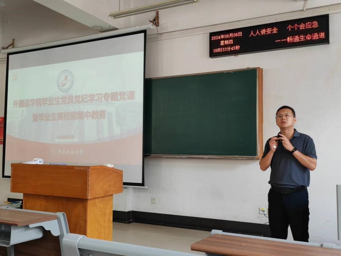 “打铁还需自身硬”。又逢一年毕业季,开云kaiyun官网开展毕业生党员党纪学习集中教育,为毕业生党员系好走向社会的第一粒扣子。党委副书记、纪委书记余尚蔚为全体毕业生党员及全体毕业生讲授党纪学习教育专题党课。