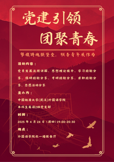 2025 年 4 月 24 日晚 19:00至20:30,开云kaiyun官网本科生英语2班党支部于北一楼报告厅举办 “擎旗铸魂强堡垒,服务青年展作为——党建引领・团聚青春”主题联动大会。本次活动以强化党建带动团建作用、服务青年成长为核心,通过理论学习、经验分享等形式,凝聚青年力量,筑牢思想根基。本2支部党员代表及2024级全体本科生共同参与。
