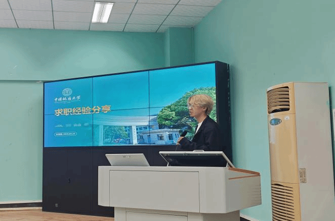 叶荣凯同志结合他的求职经验,从求职信息获取、简历制作、面试技巧三个方面展开分享,为同学们提供了全方位的求职实战指南。他建议大家要明确个人职业规划,重点关注学校就业信息网、企业官网及国家大学生就业服务平台,抓住校招机会,锚定目标,充分准备。