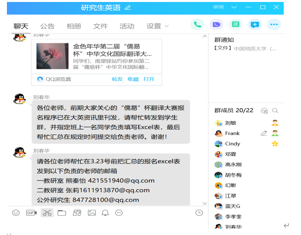 自1月30号开始,在校研究生院的具体要求和指导下,学院张基得书记、张峻峰院长高度重视,积极部署。承担我校研究生公共英语教学的老师们充分利用原定返校开学日期前的时间,在QQ群里开展头脑风暴,充分讨论如何因地制宜地开展学习、教学和研究工作,迅速制定研究生科技英语写作与交流“一课一策”教学工作组织方案。